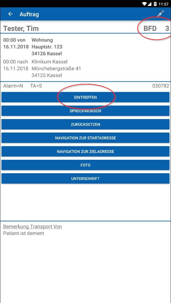 Jeder Auftrag trifft auf dem Gerät ohne Status ein. Sobald Sie den Auftrag übernehmen, wird der nächste Folgestatus angezeigt.
