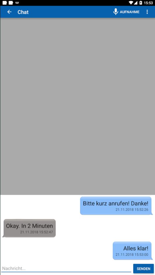 Der Chat ist eine sichere Kommunikationsmöglichkeit. Sie können direkt mit der CareMan Disposition in Echtzeit schreiben. Der Chat wird in Ihrem CareMan Office archiviert und Sie sind nicht von anderen APPs abhängig.